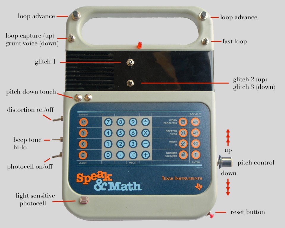 The Texas Instruments Speak & Spell line is the electric guitar of the circuit bending world: ubiquitious and always great sounding in the right hands. Our favorite is the Speak & Math, but they all have their own vocabulary and character. We use the typical glitches, pitch shift, looping features, theremin-like functions and distortions. Prices and availability vary, so get in touch if you’re interested in one and we’ll let you know details.